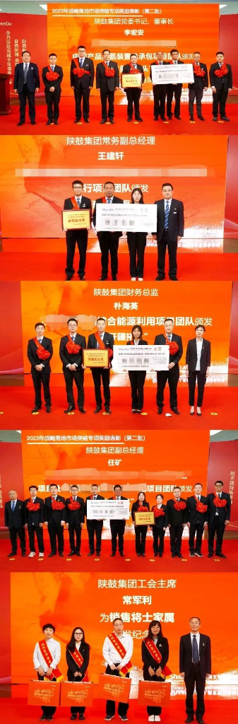 2023年5月12日,陜鼓集團(tuán)召開(kāi)了2023年戰(zhàn)略落地市場(chǎng)突破專項(xiàng)獎(jiǎng)勵(lì)(第一批)表彰大會(huì)。在表彰會(huì)后不到一個(gè)月的時(shí)間內(nèi),陜鼓各銷售團(tuán)隊(duì)持續(xù)聚焦用戶需求及需求的變化,積極發(fā)揚(yáng)“飛奪瀘定橋”的奮斗者精神,勇挑重?fù)?dān),奮斗創(chuàng)新,系統(tǒng)運(yùn)用“三大法寶”,再次實(shí)現(xiàn)了多個(gè)重大項(xiàng)目的落地。為進(jìn)一步鼓舞和激勵(lì)全體銷售將士以更加飽滿的熱情攻堅(jiān)克難,開(kāi)拓進(jìn)取,全力奪取2023年各項(xiàng)工作的全面勝利。6月6日,陜鼓集團(tuán)召開(kāi)2023年戰(zhàn)略落地市場(chǎng)突破專項(xiàng)獎(jiǎng)勵(lì)(第二批)表彰大會(huì)。