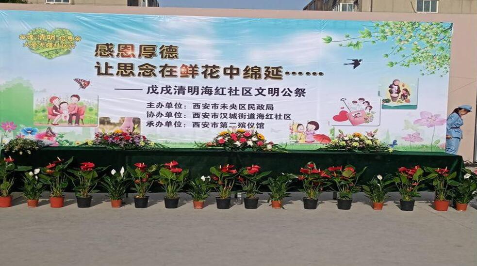 海紅物業(yè)公司與海紅社區(qū)攜手西安市第二殯儀館在海紅小區(qū)文體廣場開展以“感恩厚德、讓思念在鮮花中綿延”為主題的綠色公祭活動。未央?yún)^(qū)民政局、漢城街道辦、西安市第二殯儀館的相關(guān)領(lǐng)導,海紅物業(yè)公司、海紅社區(qū)職工群眾600余人參加了此次公祭活動。