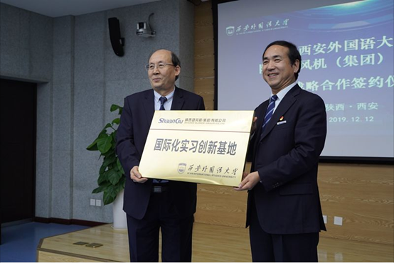 陜鼓集團黨委書記、董事長李宏安與西安外國語大學校長王軍哲代表校企簽訂了戰略合作協議。西安外國語大學授予陜鼓“國際化實習創新基地”牌匾,陜鼓授予西安外國語大學“國際化人才聯合培養基地”牌匾。